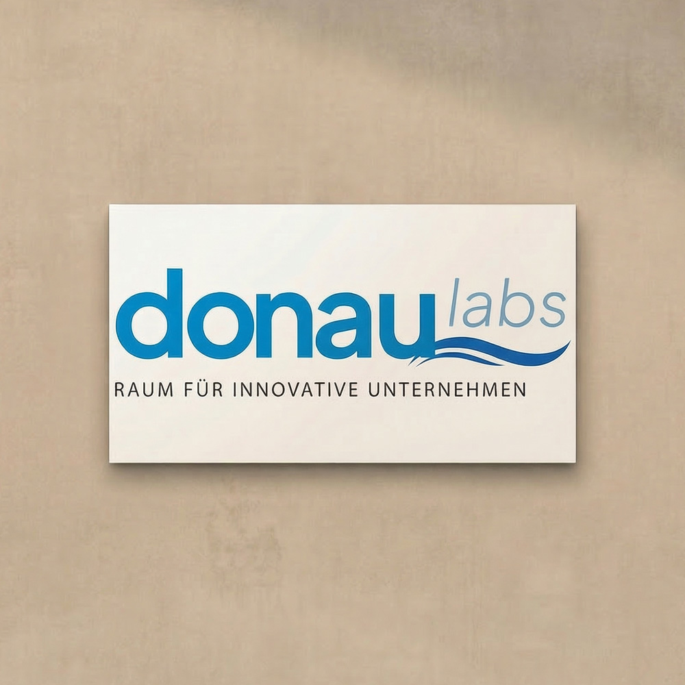 Die Gestaltung orientiert sich am Corporate Design von donauLabs und integriert den markanten Schriftzug sowie den Leitsatz „Raum für innovative Unternehmen“. Klare Typografie, moderne Layouts und hochwertige Materialien sorgen dafür, dass die Beschilderungen sowohl aus der Nähe als auch aus größerer Entfernung gut lesbar sind.